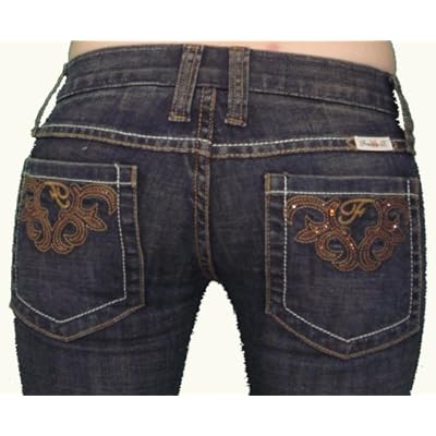 Frankie B Downtown Dagger Jean Slim Bootcut w Crystals in Newton Topaz